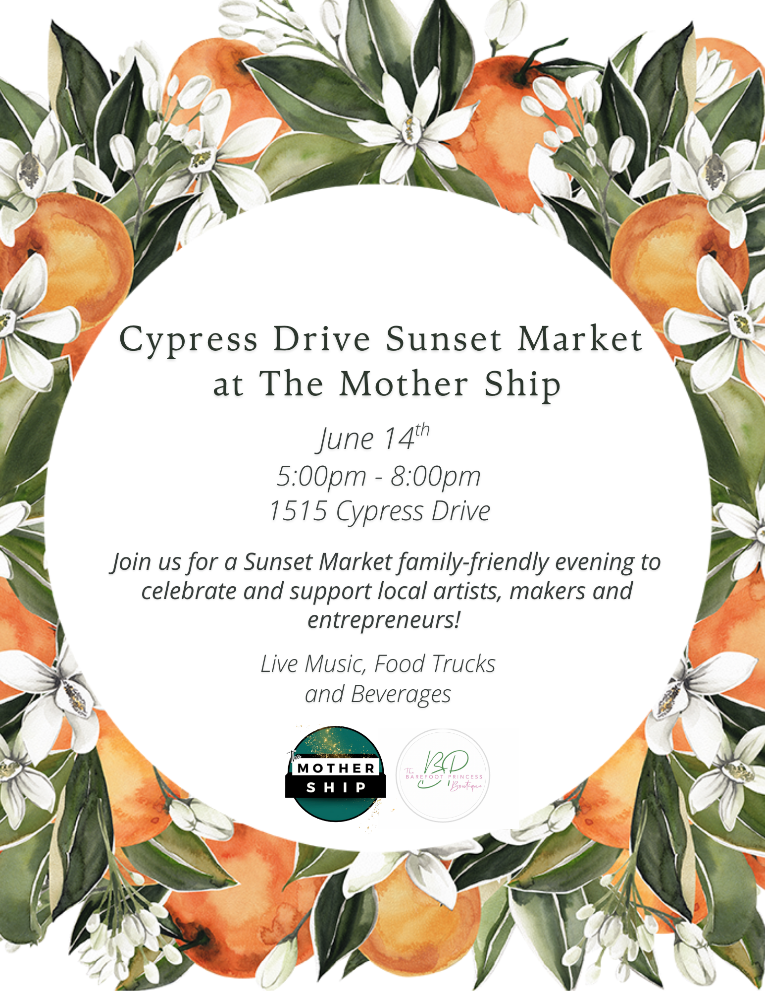 Join us Saturday, June 14th for the Cypress Drive Sunset Market at The Mother Ship!